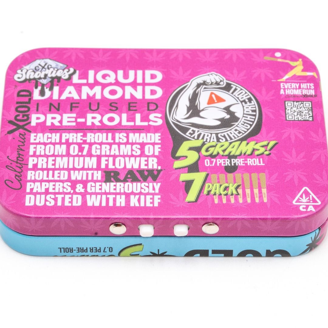 Find your perfect balance with California Gold Hybrid Shorties. Rolled with premium flower, infused with liquid diamonds, and dusted in rich kief, these pre-rolls deliver a smooth, flavorful smoke with serious potency. Wrapped in RAW unrefined paper, they burn clean, even, and slow—giving you a gold-standard session every time.
